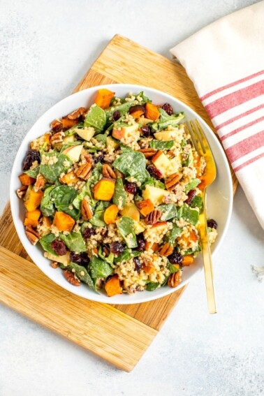 I love making a big batch of this salad at the beginning of the week. It’s perfect on its own, but I often serve it with grilled chicken or grilled salmon for a quick, protein-packed lunch. Bonus: the flavors only get better as it sits!